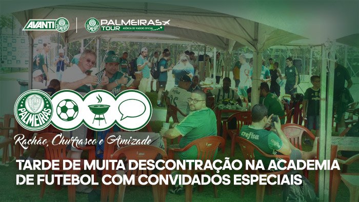 Uma tarde de rachão, resenha e churrasco com ex-jogadores e torcedores do Palmeiras. A Palmeiras Tour, agência oficial de viagens e evento do clube, promoverá este encontro memorável no dia 09 de dezembro (domingo), a partir das 13h, no campo society da Academia de Futebol.
