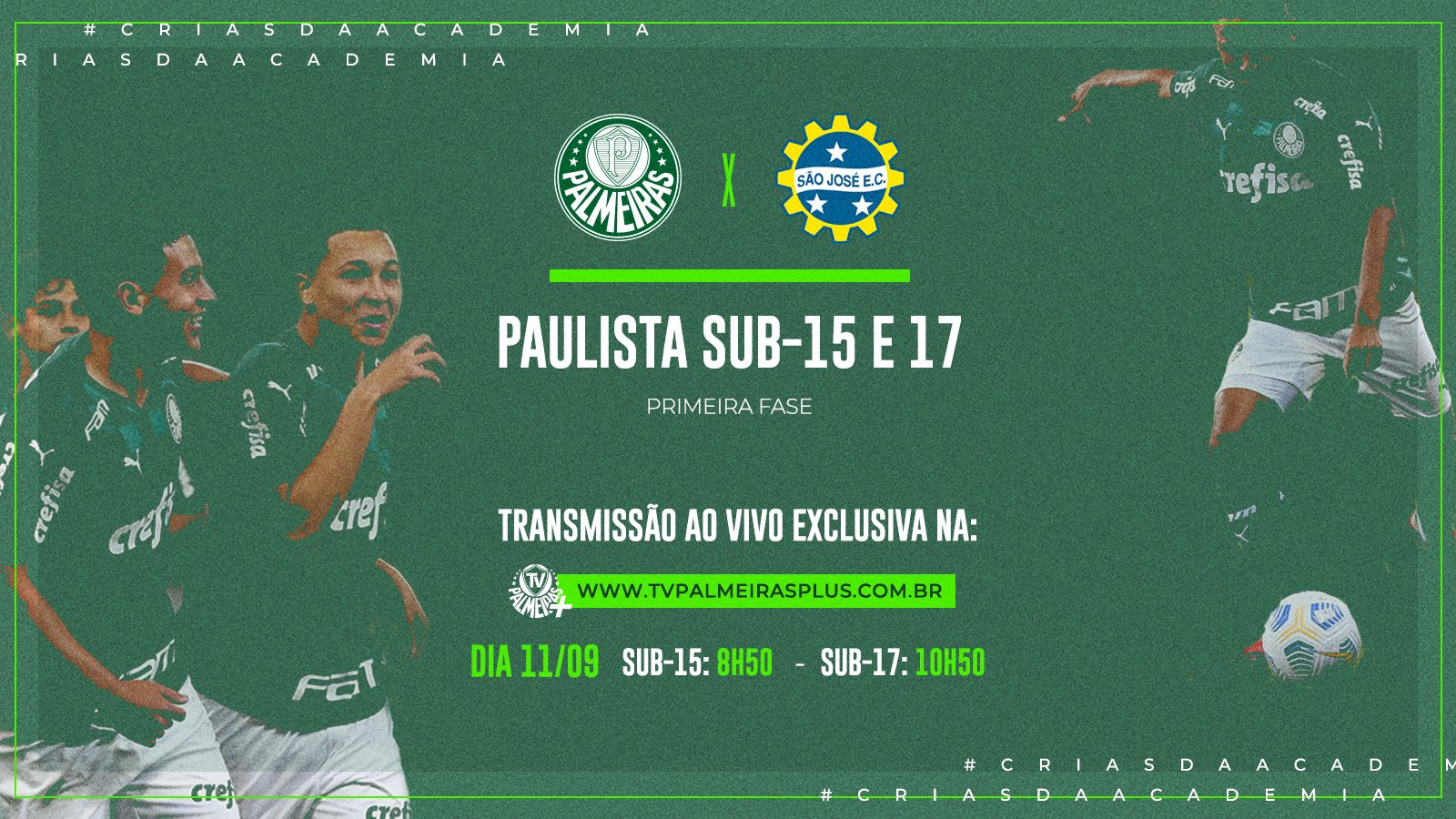 11/09 – 09h: Palmeiras x São José – Academia de Futebol 2 (TV Palmeiras Plus)