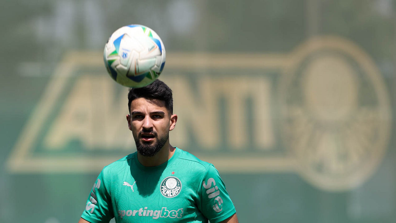O zagueiro Gustavo Gómez durante treinamento na Academia de Futebol (Foto: Cesar Greco/Palmeiras/by Canon)
