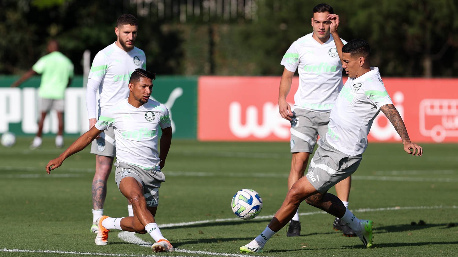O Palmeiras se reapresentou na tarde desta quarta-feira (15), na Academia de Futebol, depois da vitória por 3 a 0 sobre o Internacional, no último sábado (11), pelo Campeonato Brasileiro. Sob forte calor, a equipe realizou atividades técnicas no gramado e iniciou o período de treinamentos na pausa da Data Fifa – o clube volta a campo contra o Fortaleza no próximo dia 26, às 18h30, no Castelão, pela 35ª rodada.