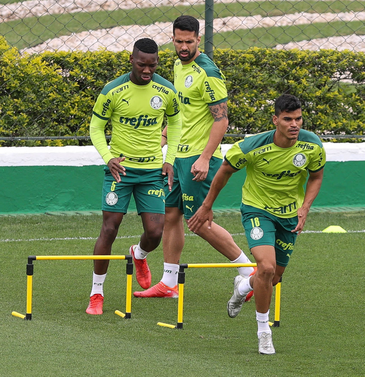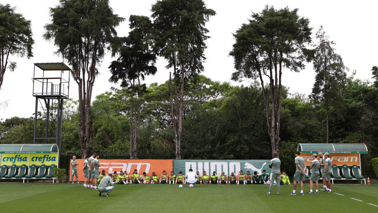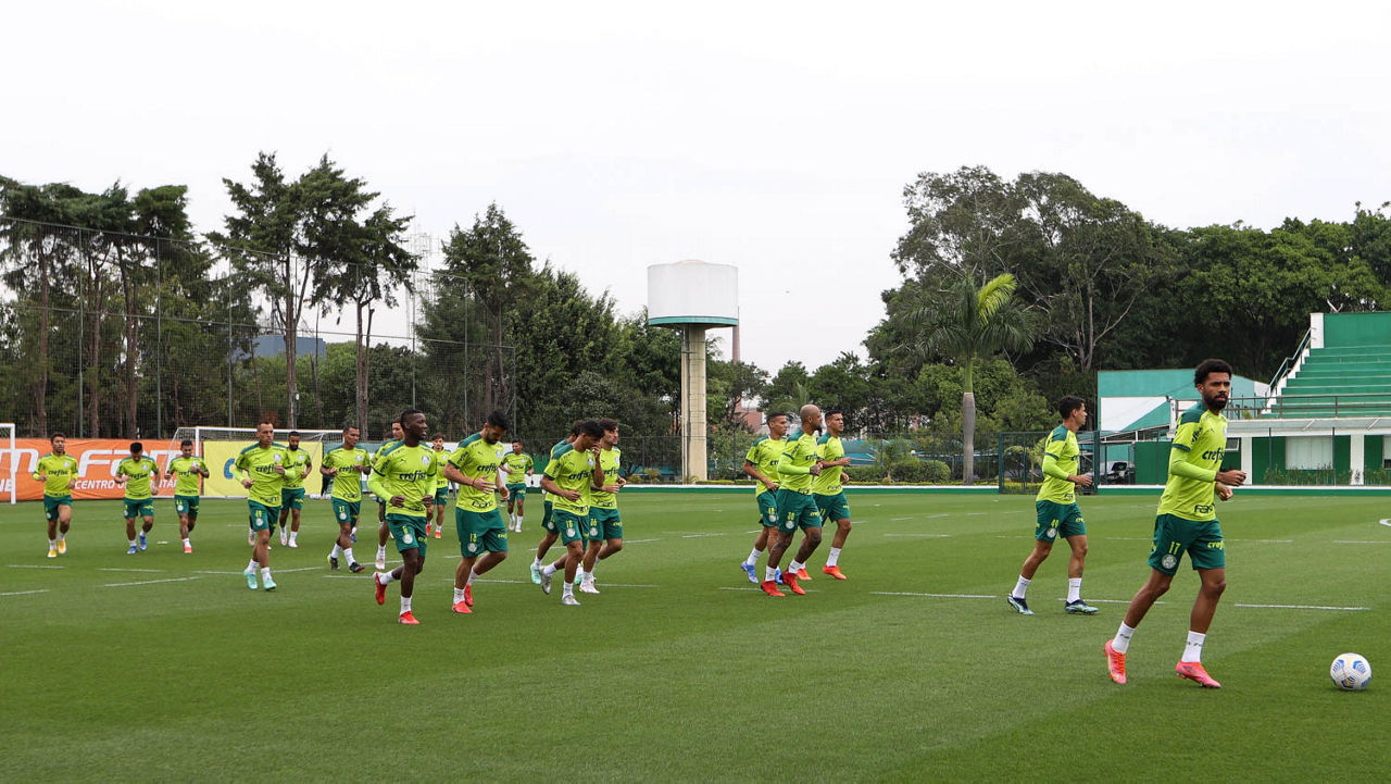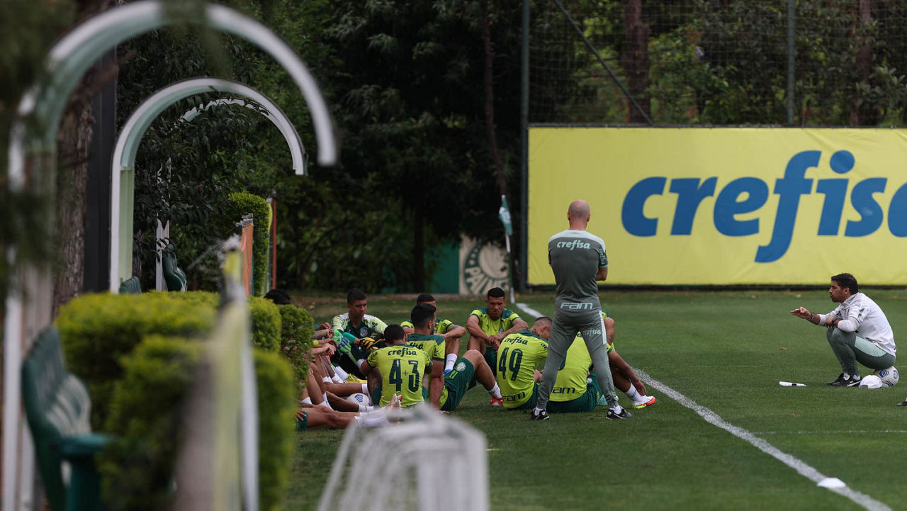 Antes do início do treino, o técnico Abel Ferreira reuniu todo o elenco no campo para uma conversa. Em seguida, os titulares da partida contra o Bahia, na última terça-feira (12), fizeram um trabalho regenerativo ativo em uma atividade com bola comandada pelos preparadores físicos do Núcleo de Saúde e Performance (NSP).