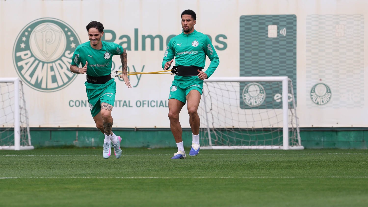 O Palmeiras treinou na tarde desta terça-feira (05), na Academia de Futebol, e intensificou a preparação para o jogo de volta das oitavas de final da Copa do Brasil, contra o Corinthians, às 21h30 desta quarta-feira (06), no Allianz Parque. O elenco realizou uma atividade tática posicional, ensaiou bolas paradas e encerrou com um trabalho recreativo. O zagueiro Bruno Fuchs cumpriu cronograma com o Núcleo de Saúde e Performance, enquanto o também zagueiro Murilo seguiu a transição física. Confirmado como reforço do Maior Campeão do Brasil nesta segunda (04), o lateral-direito Khellven fez o aquecimento com o grupo e um trabalho físico à parte.
