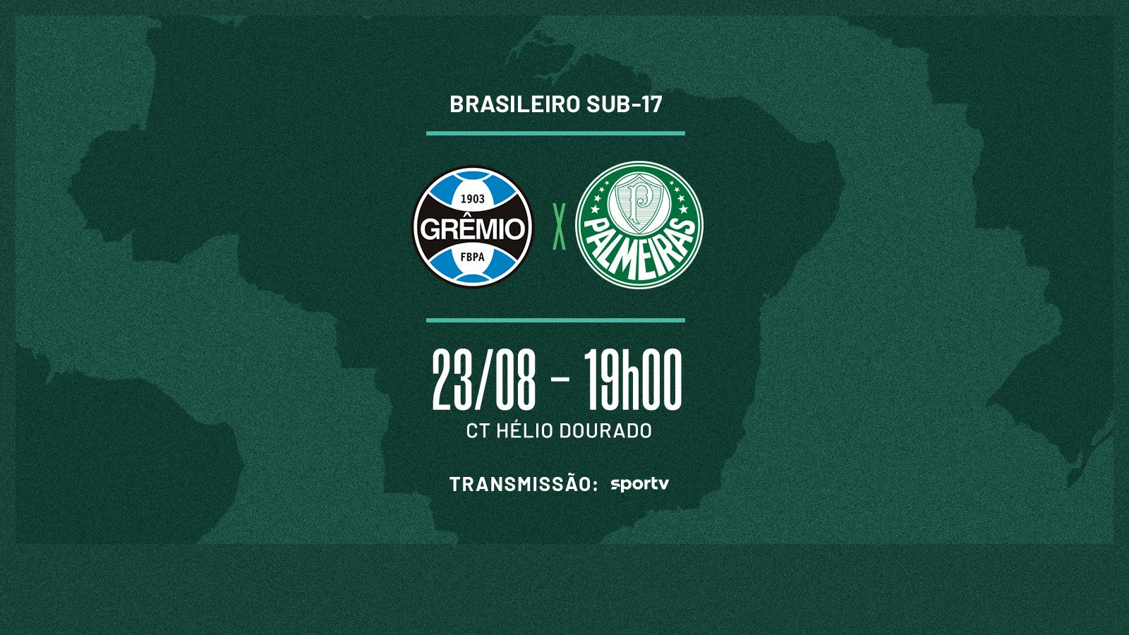 O time Sub-17 do Palmeiras terá pela frente o Grêmio, nesta terça-feira (23), às 19h (de Brasília), no CT Hélio Dourado, em Eldorado do Sul-RS, em partida válida pela quarta rodada da fase inicial do Campeonato Brasileiro. O duelo terá transmissão do SporTV.