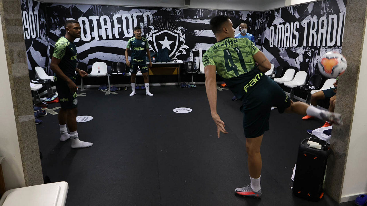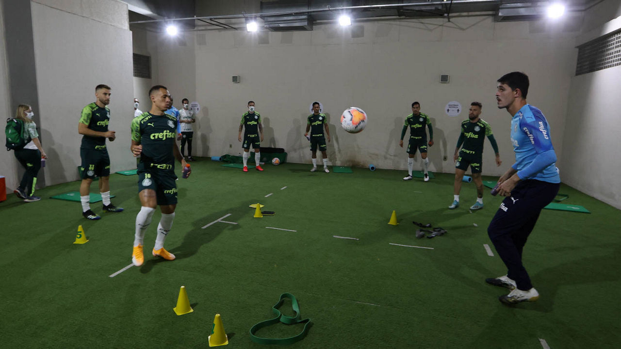 A equipe alviverde chegou ao estádio às 16h, e os atletas fizeram trabalhos preventivos e ativação muscular no vestiário até 17h.