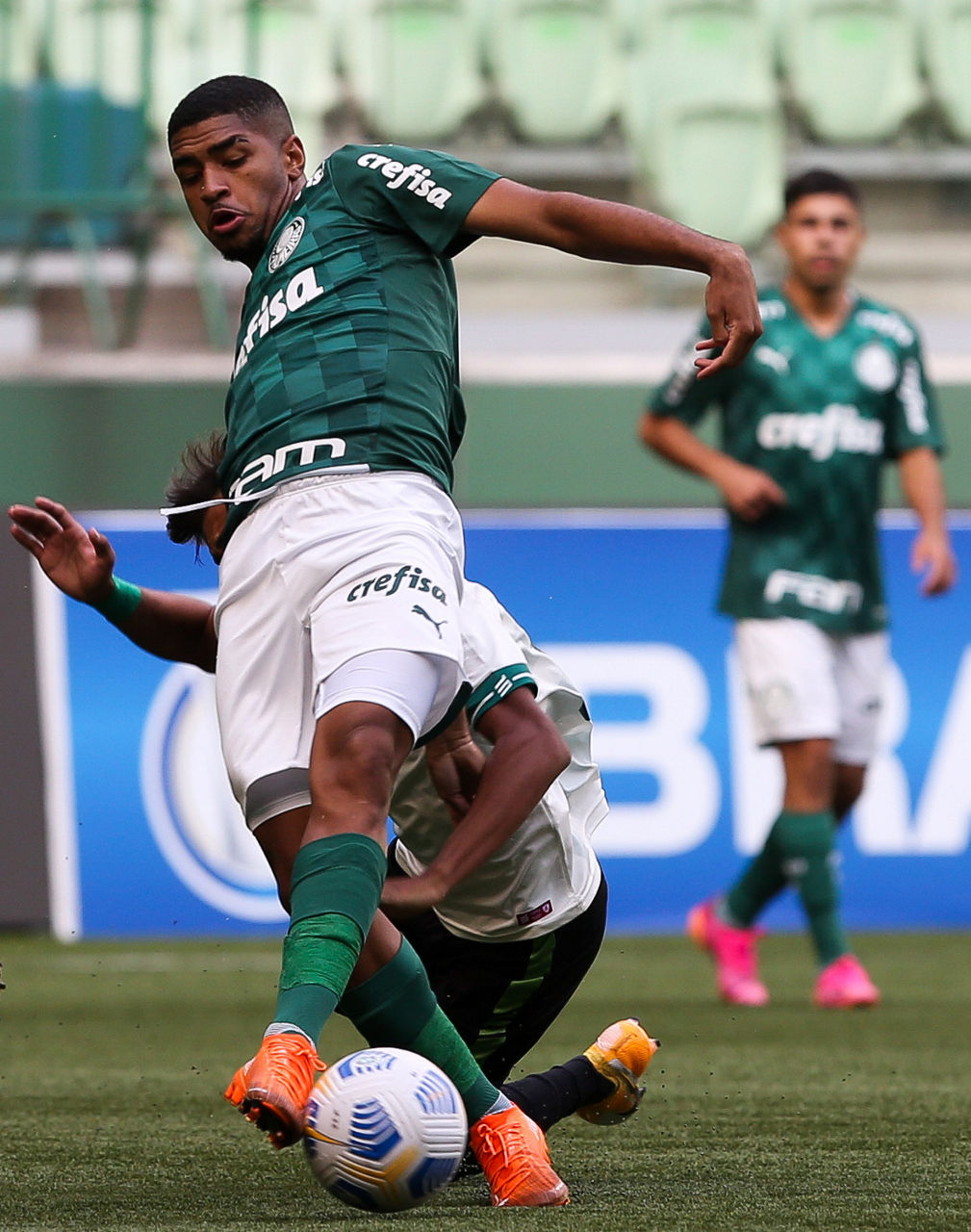 No segundo tempo, a equipe palestrina continuou a dominar as ações do duelo, mas viu o América diminuir em rápido contra-ataque puxado por Adyson. Não demorou muito, e o Verdão logo retomou a diferença de dois gols no placar: aos 19, após jogada de Endrick, Jean Carlos chutou cruzado da esquerda e não deu chances para o goleiro Carlos Eduardo.