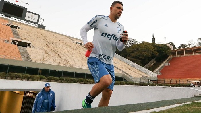 O Palmeiras realizou no fim da tarde desta terça-feira (14) um treino no estádio do Pacaembu. A partida da próxima quinta-feira (16), válida pelas quartas de final da Copa do Brasil, será disputada no campo municipal. No jogo de ida, disputado em Salvador, os times empataram em 0 a 0.