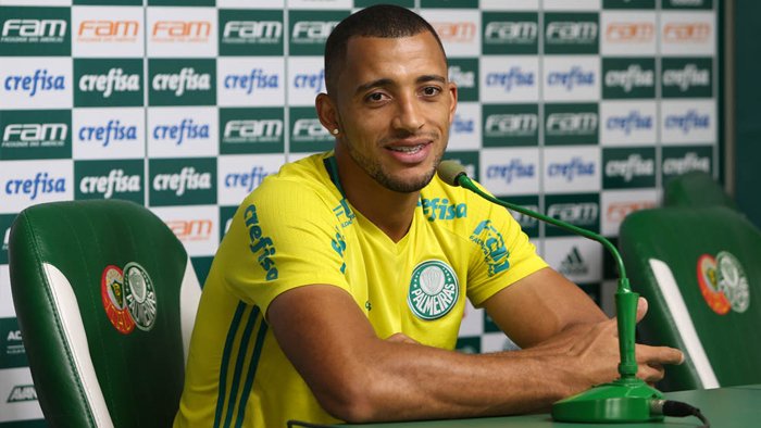 Cesar Greco/Ag Palmeiras/Divulgação _ Vitor Hugo concedeu entrevista coletiva após o treino desta quinta-feira (10)
