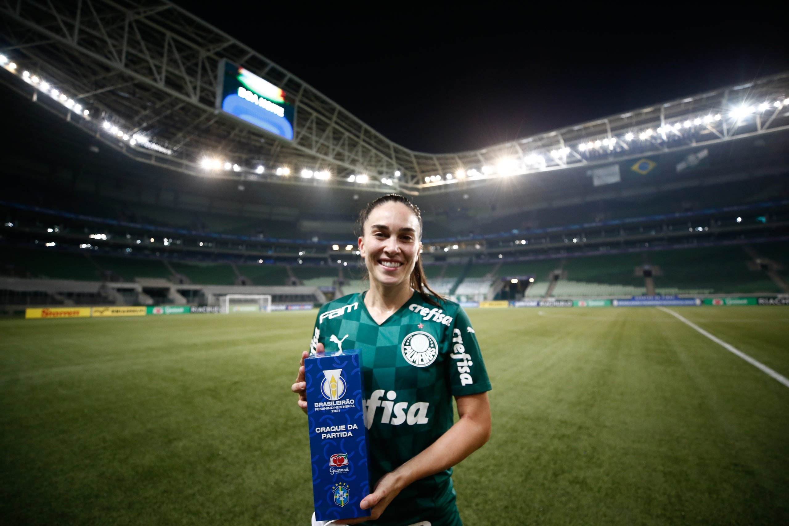 O quinto gol foi marcado neste domingo (22), contra o Grêmio, em jogo que valeu a classificação alviverde para a semifinal do torneio nacional e rendeu a conquista do prêmio de melhor jogadora da partida. Curiosamente, o adversário gaúcho é o time em que a jogadora mais fez gols – marcou dois tentos na primeira fase. “Esse gol deu mais confiança e depois conseguimos colocar a bola no chão e gerar mais situações”, comentou sobre o gol da partida de volta das quartas de final.