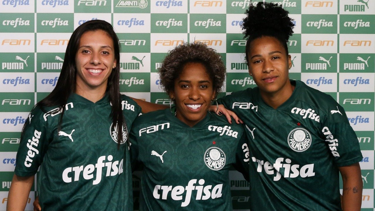 Palmeiras apresenta três atletas do time feminino em coletiva na Academia de Futebol